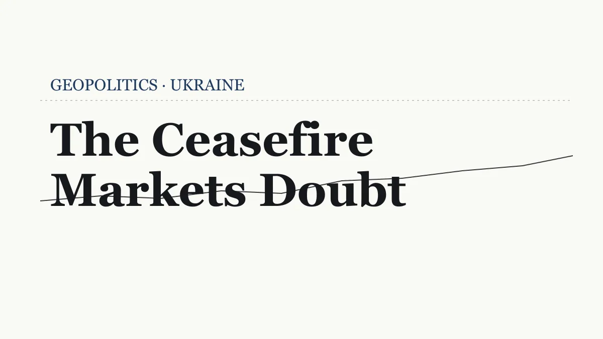 Continued battlefield activity. Ukrainian forces’ long-range drone strikes on Russian refineries, Russian attacks along the eastern axis, and persistent missile exchanges all signal escalation rather than de-escalation. Energy-market spillovers have also tightened the link between this conflict and Middle East dynamics, where Iran-related volatility continues to ripple into European fuel pricing. Markets price war continuation, not negotiation theater.